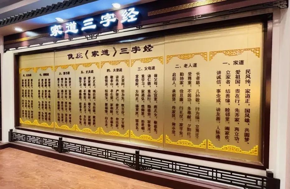 孝道馆里展览了仇庄村的《家道》三字经,将“追寻家训家规,呼唤良好家风”的理念展现的淋漓尽致。