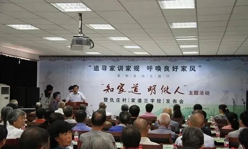 组建以农村老党员、退休老教师为主体的乡贤队伍,通过讲乡贤故事、书法家写乡贤家训、专栏报道乡贤、评选“好乡贤”、“村贤”宣讲团等活动,使“知乡贤、颂乡贤、学乡贤、当乡贤”逐渐深入人心,使新乡贤真正成为服务群众、自觉践行社会主义核心价值观、引导社会正能量的中坚力量。2014年,仇庄村创造性地将社会主义核心价值观与孝德文化相融合,启动“追寻家训家规,呼唤良好家风”主题教育活动,开创道德“大讲堂”+“小课堂”的模式,组织开展村民集中学习。“大讲堂”主要聘请专家教授作中华优秀传统文化、家风文化、孝亲敬老、邻里守望等方面的讲座,“小课堂”针对每个家庭的特点开展一对一的指导。成立以“村贤”为主要力量的村民宣讲团,邀请专业老师开展系统培训,通过“我听、我看、我讲、我议、我行”的宣讲模式,发挥其在弘扬好家风、传播正能量方面的作用。